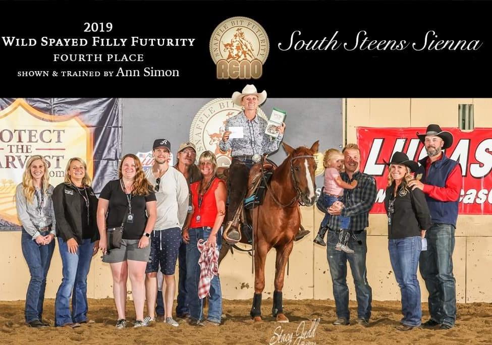 Twelve selected fillies were offered for sale at the 2018 Reno Snaffle Bit Futurity. These fillies are invited back to the 2019 Reno Snaffle Bit Futurity to compete in their own division for a $25 K purse. The twelve fillies offered in this special event were selected from the Three Fingers, South Steen’s and Beaty’s Butte herds. By the time of the sale, all of the fillies were spayed, vaccinated and handled for 30 days.